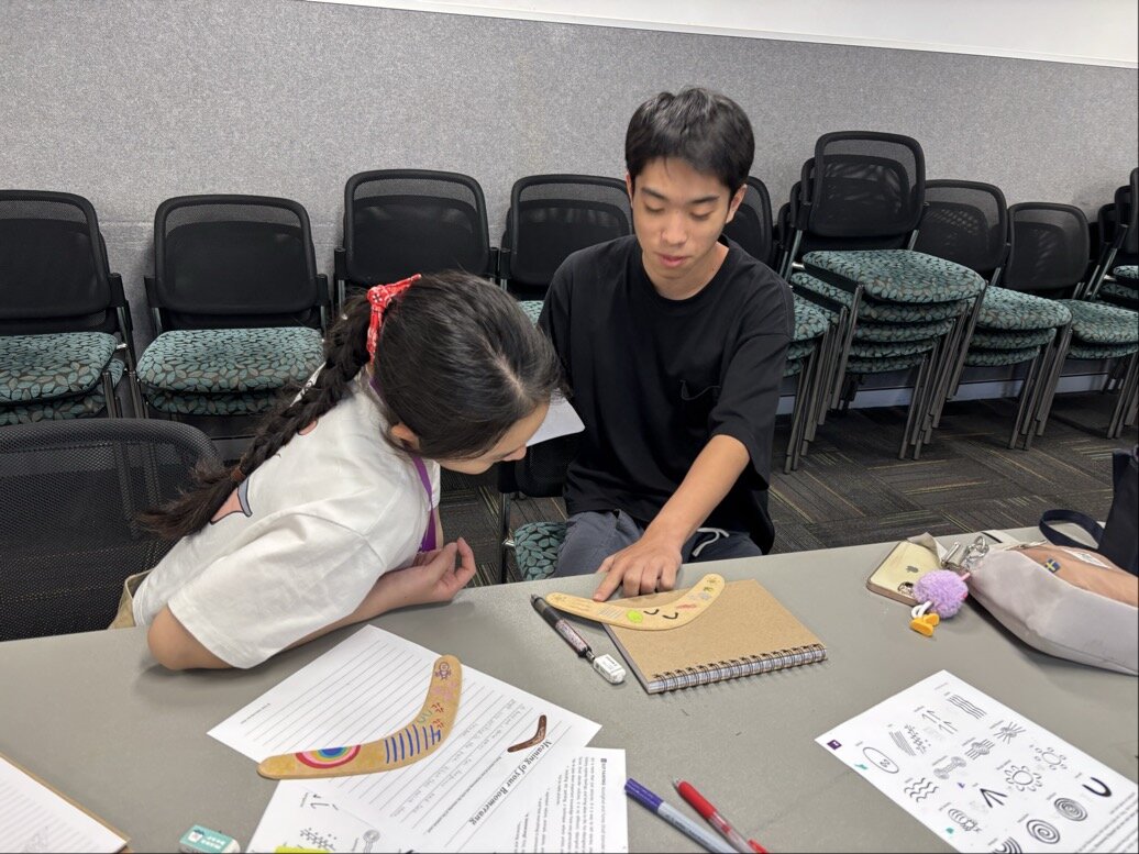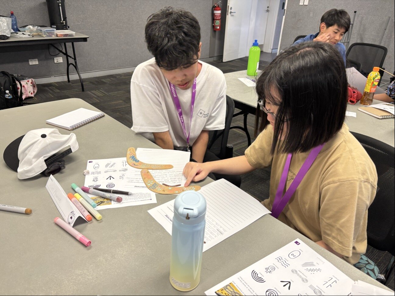 【開邦雄飛速報④】3/2(月)はジェルガル・カルチャーセンターにて、オーストラリアの先住民についての学習をしました。その後、バーリー国立公園を散策したり、ビーチでモーニングティーをとったりとオーストラリアの自然の豊かさを感じました。ホストファミリーに作ってもらったお弁当を食べたあと、午後は、オーストラリアの自然や文化、習慣について英語のレクチャーとブーメラン作り。アボリジニが使っていたサインで各々オリジナルストーリーを作って、発表しあいました。授業を受ける態度や物怖じせずに英語を話そうとする姿勢にお褒めの言葉をたくさんもらっています!